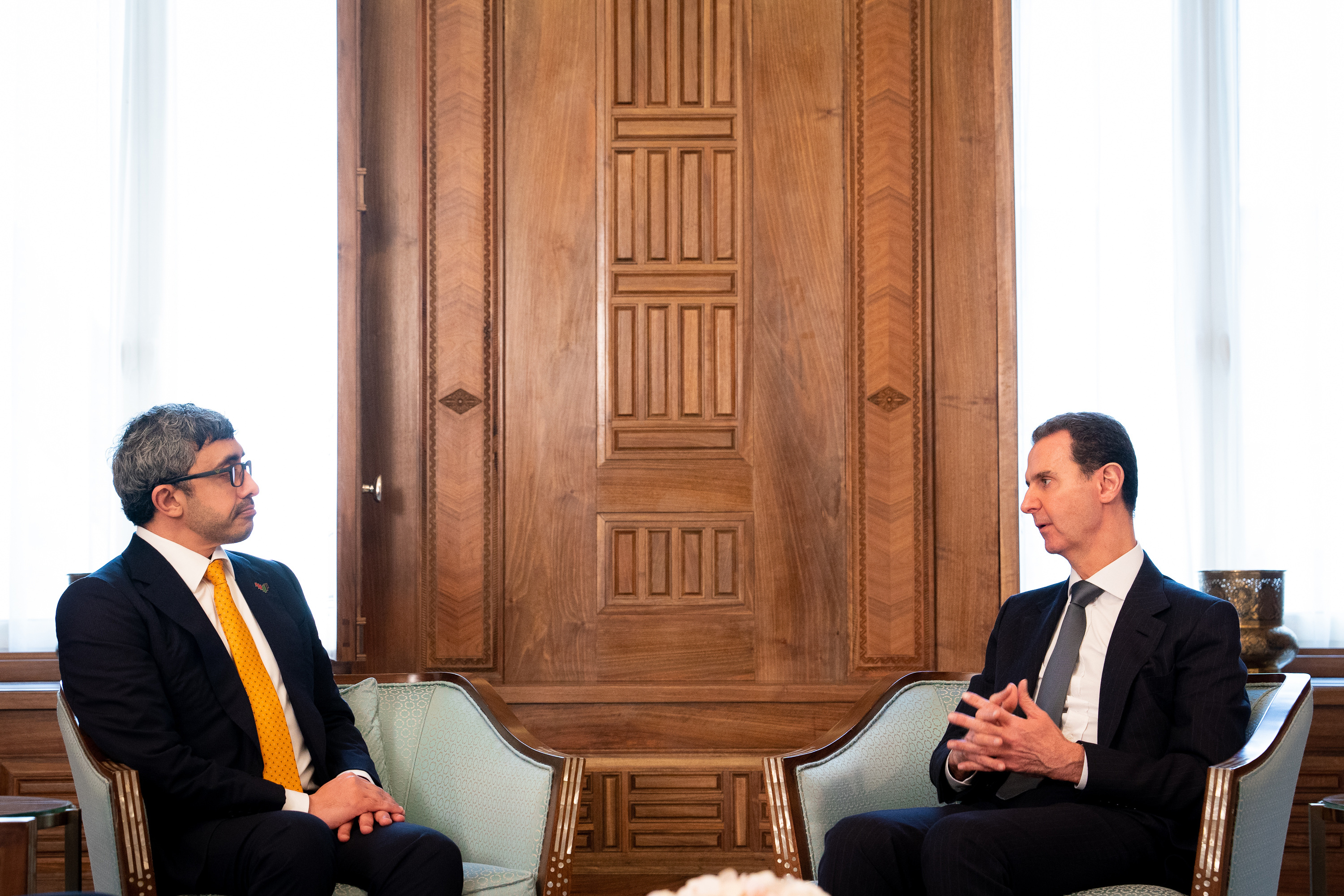 Bashar al-Assad, President of Syria, received H.H. Sheikh Abdullah bin Zayed Al Nahyan, Minister of Foreign Affairs and International Cooperation in Damascus, as part of his working visit to Syria.