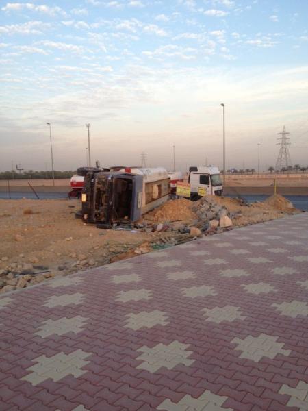 Saudi authorities averted a third disaster in just a few days when a gasoline-laden tanker veered off the road and overturned near the road in the Gulf Kingdom’s capital Riyadh, triggering panic among drivers and nearby residents.