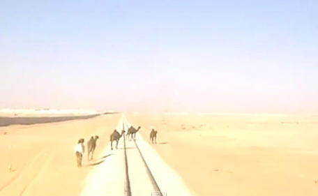 A YouTube film published by 'Saqb' newspaper showed the camels were crossing the rail in the eastern province when the train unleashed its horn at them.