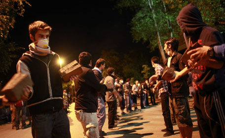 Anti-government protesters carry bricks to build a barricade in central Ankara June 9, 2013. Turkish Prime Minister Tayyip Erdogan told flag-waving supporters on Sunday that his patience with mass anti-government protests had its limits, and moved to seize back the initiative by announcing counter-rallies next weekend. (REUTERS)