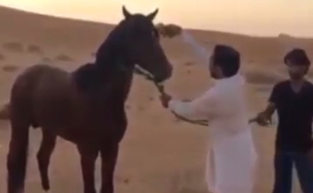 The horse collapsed instantly and died after a brief shake in its limbs. The Arabic language daily 'Sabq' did not mention where in Saudi Arabia the film was shot but said it had drawn angry comments from the readers and human rights activists, who called on authorities to find the two men and punish them.