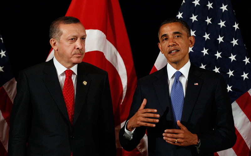 U.S. President Barack Obama (right) speaks next to Turkey's Prime Minister Recep Tayyip Erdogan after a bilateral meeting ahead of the Nuclear Security Summit in Seoul on March. (Reuters)