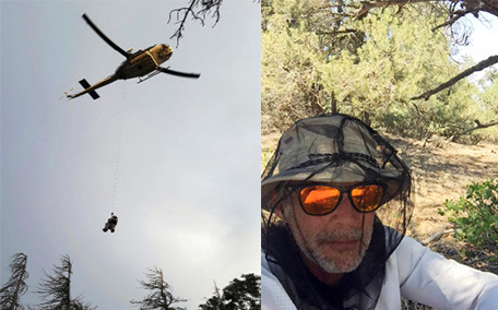The incident Saturday in the remote Piute Mountains about 85 miles (137 kilometers) north of Los Angeles occurred after hiker Charles Brandenburg became dehydrated in scorching heat and activated a rescue device that allowed him to send text messages to authorities.