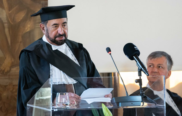 H.H. Dr. Sheikh Sultan bin Muhammad Al Qasimi, Supreme Council Member and Ruler of Sharjah, has received an Honorary Doctorate from the University of Turin and the Polytechnic University of Turin, for his contribution to urban and regional development, and commitment to integrating architecture with sustainable technology solutions.