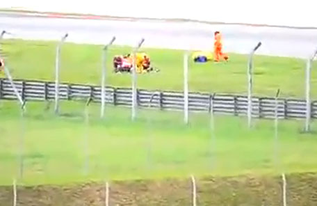 Shocking footage shows an ambulance staff dropping a badly hurt Marco Simoncelli just moments after his fatal crash at the Malaysian MotoGP in Sepang.