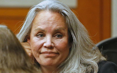 Pamela Phillips looks on in Pima County Superior Court Tuesday, April 8, 2014, in Tucson, Ariz. Phillips, a once-prominent socialite, was found guilty Tuesday of first-degree murder and conspiracy to commit murder in the 1996 Tucson car bomb killing of her ex-husband after spending years abroad living a lavish lifestyle across Europe. (AP)