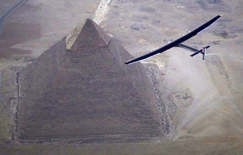 Solar Impulse 2 flew over the Giza Pyramids before reaching Cairo. (AFP)