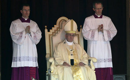 Pope Francis leads a canonisation mass for Joseph Vaz in the Sri Lankan capital Colombo on January 14, 2015. (AFP)