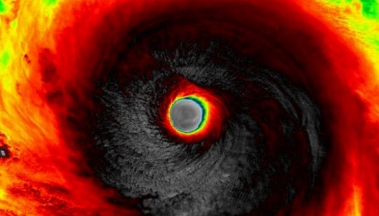 The storm was roaring across the western Pacific Ocean packing wind gusts up to 354 kilometres per hour (220 mph) according to the Joint Typhoon Warning Center which rated it a maximum category five.
