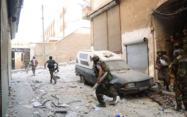 Forces loyal to President Bashar al-Assad are seen at Suleiman al-Halabi neighbourhood in Aleppo city September 20, 2012. (REUTERS)