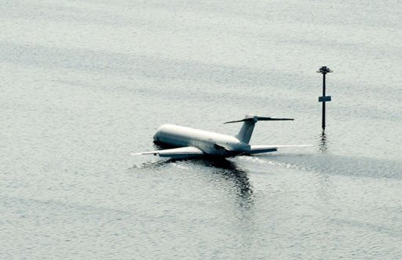 An aircraft sits on a flooded tarmack at the Don Muang domestic airport in Bangkok. (AFP)