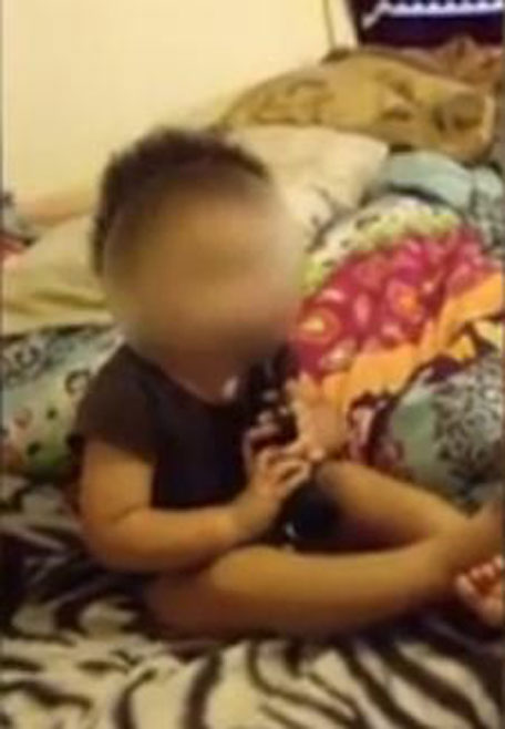Girl's 22-year-old mother can be heard encouraging the toddler to say 'pow'. (YouTube)