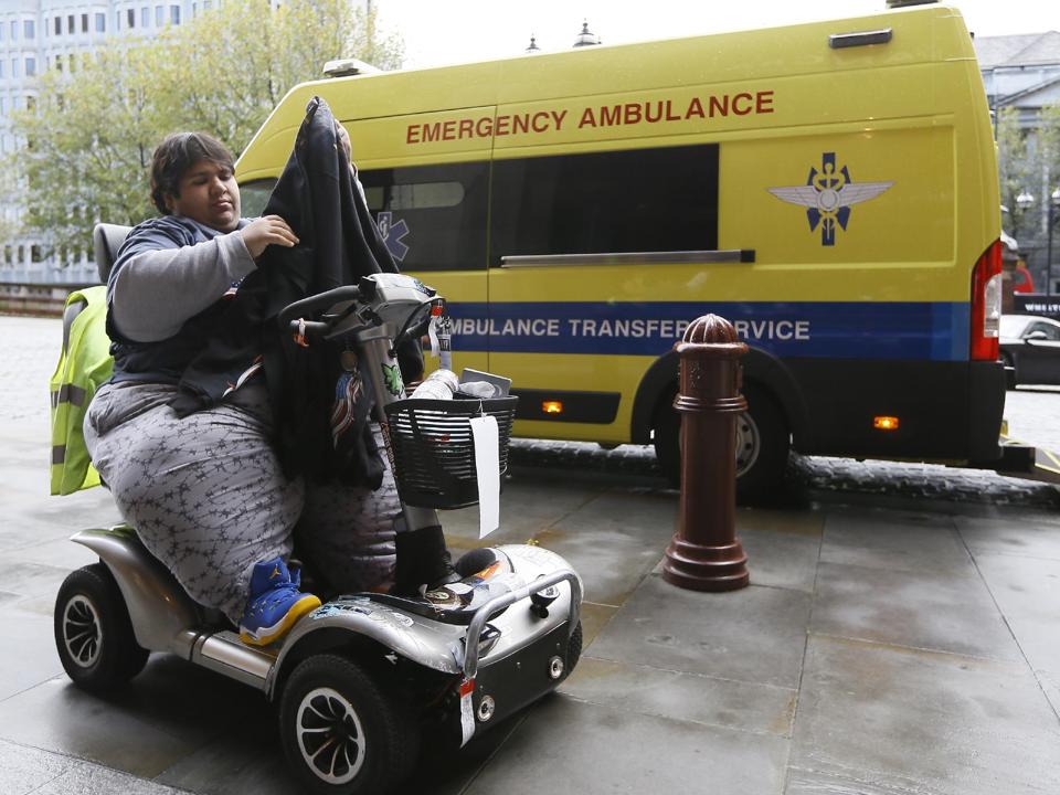 "I am absolutely tired," the 22-year-old said as he slumped over in his mobility scooter just before being loaded into the ambulance.