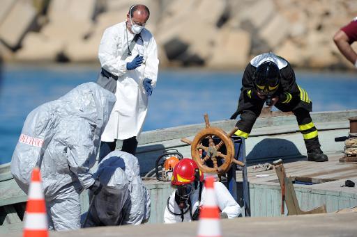 Rescuers at the port of Pozzallo struggled to pull the bodies free from the small blue fishing boat, in which the migrants - for the most part from Syria, Eritrea, Somalia and Cameroon - had set sail from the coast of North Africa for Italy.