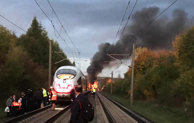 The fire broke out on the train Friday morning as it was near the town of Dierdorf. Police told the dpa news agency the train was halted and emergency crews evacuated all 510 people on board.