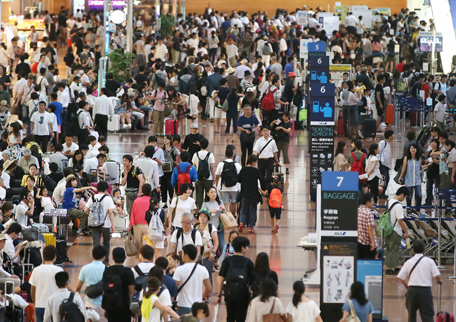 People crowd at the departure lobby at Haneda Airport in Tokyo. (AFP)