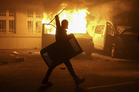 As protesters and police battled, Russia called the escalation a "direct result of connivance by Western politicians and European structures that have shut their eyes ... to the aggressive actions of radical forces".