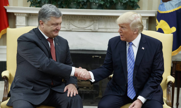 President Donald Trump shakes hands with Ukrainian President Petro Poroshenko. Photo: AP