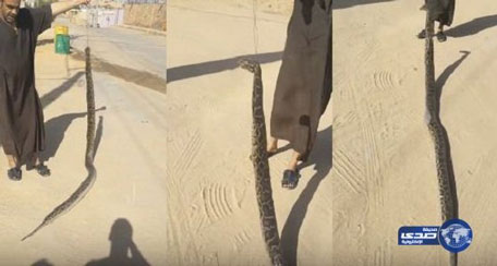 A YouTube film carried by ‘Sada’ newspaper showed the man dragging the dead snake on the sand outside his house in the central Al Qaseem province.