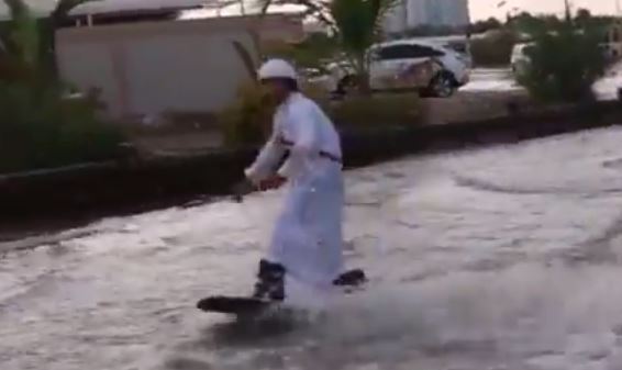 Water-skiing on UAE's wet roads