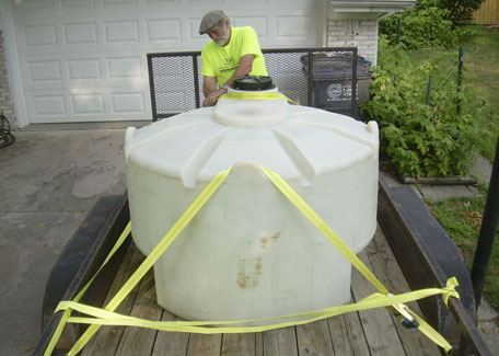 Jascha Chiaverini secures a 500-gallon tank of water from a Napolean, Ohio grain elevator onto a trailer to donate to one of the city's distribution centers, where Toledoans can fill their water jugs at no charge in Toledo, Ohio August 2, 2014. (REUTERS)