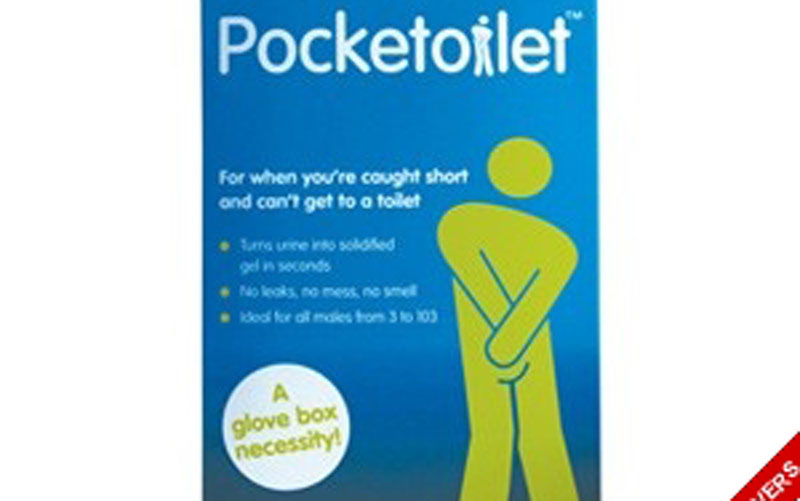 The pocket toilet is said to be very discreet and easily fits into a glove compartment.
