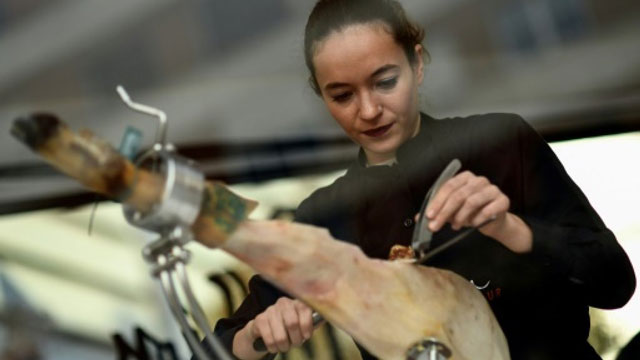 In Spain, cutting "jamon" is a fully-fledged job that brings prestige and money, a man's world which women are only just starting to take on.