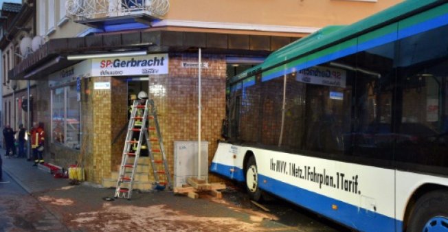 "The fully occupied school bus drove for reasons that were not immediately clear at full speed into several other vehicles and then into the wall of an electronics shop," police said in a statement.