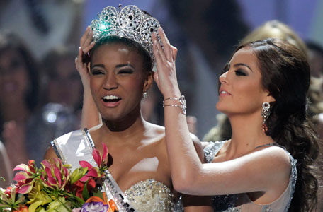 Miss Angola Leila Lopes is crowned Miss Universe 2011 by Miss Universe 2010 Ximena Navarrete, of Mexico, in Sao Paulo, Brazil, Monday Sept. 12, 2011. (AP)