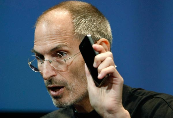 Apple CEO Steve Jobs holds up iPhone 4 as he talks about the Apple iPhone 4 at Apple headquarters in Cupertino, Calif. Jobs sent a note Monday, Jan. 17, 2011 to employees saying he's taking a medical leave of absence so he can focus on his health. (AP)