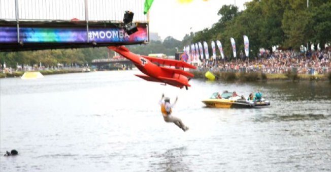 Winner Daniel Mazzei, who called himself the Red Baron after the ace World War I German fighter pilot, plunged into the Yarra with a bright red plane on his back.