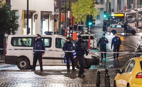 Police closes streets near the Grand Place in Brussels on Sunday, Nov. 22, 2015. With a menace of Paris-style attacks against Brussels and a missing suspect in the deadly Nov. 13 attacks in France last spotted crossing into Belgium, the city kept subways and underground trams closed for a second day. (AP)