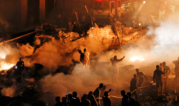 Flames raged in four to five construction sites, but officials said the number of casualties could have been far higher if the plane had struck nearby residential buildings.