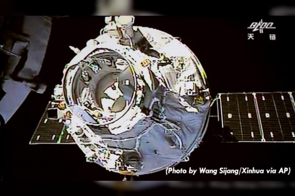 [Image caption: In this photo released by China's Xinhua News Agency, China's Tianzhou-1 cargo spacecraft moves towards the Tiangong-2 space lab for docking, as seen on a screen at the Beijing Aerospace Control Center in Beijing, Saturday, April 22, 2017. China launched its first unmanned cargo spacecraft Thursday on a mission to dock with the country's space station.