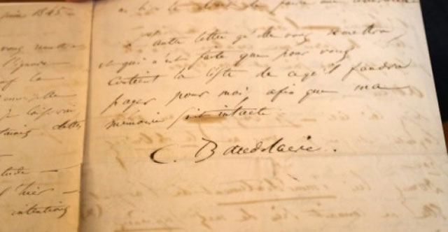 Best known for his collection of poems "Les Fleurs du mal" (The Flowers of Evil"), Baudelaire was 24 at the time he wrote the letter to his mistress Jeanne Duval in June 1845.