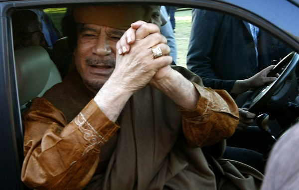 Earlier Sunday, the African Union mediators joined Muammar Gaddafi for a photocall outside his Bedouin tent in his Bab al-Aziziya compound in the capital.
