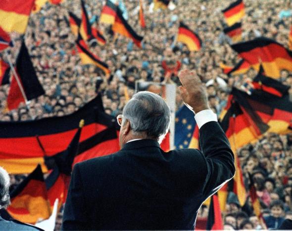 By committing to anchor Germany within Europe under a common currency, he overcame resistance to reunification from Mitterrand, Soviet leader Mikhail Gorbachev and Margaret Thatcher, the British prime minister who feared the return of a powerful, united Germany.