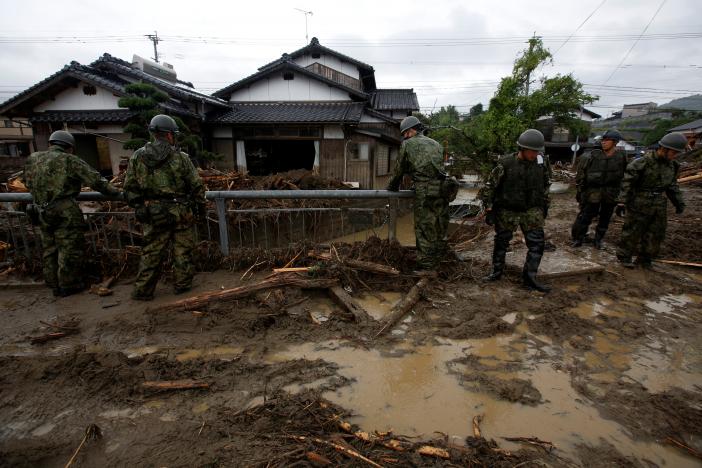 The city of Asakura was hit by more than 600 mm (24 inches) of rain since it started pouring on Wednesday, and Hita was pounded by nearly 450 mm of rain during the same period, the meteorological agency said, warning of yielding ground.
