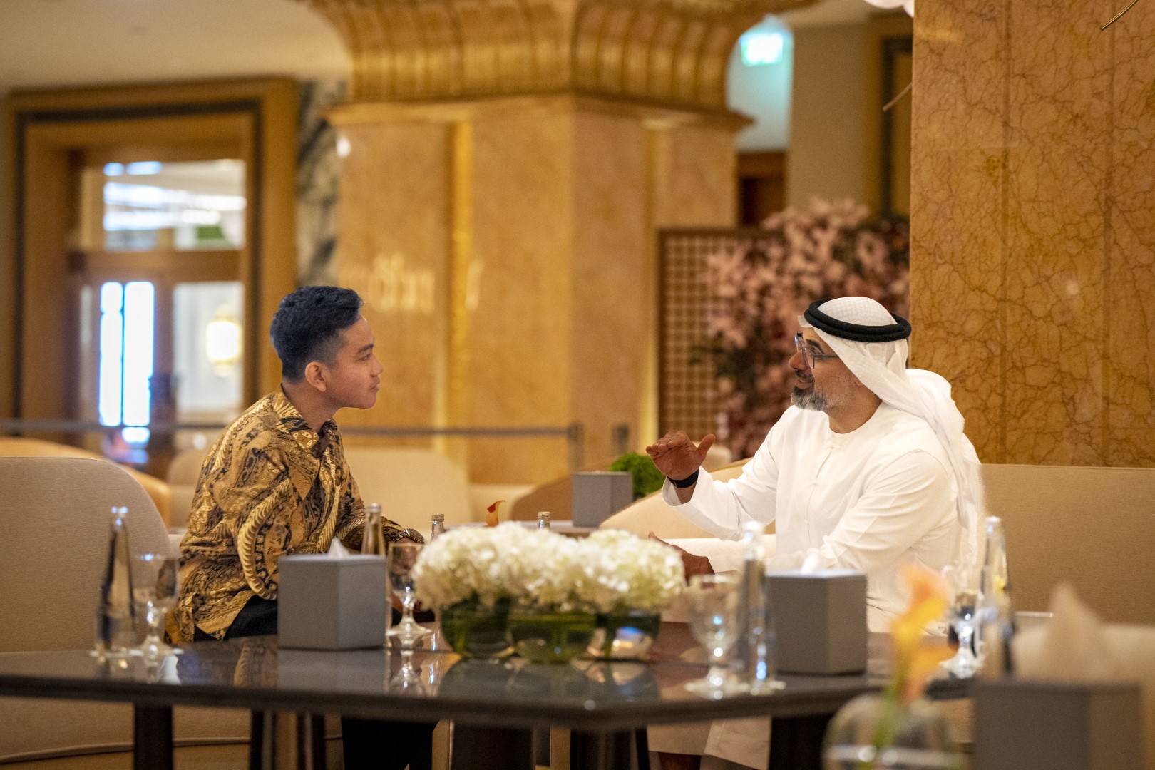 H.H. Sheikh Khaled bin Mohamed bin Zayed Al Nahyan, Member of Abu Dhabi Executive Council and Chairman of Abu Dhabi Executive Office, today received Gibran Rakabuming Rake, Mayor of Surakarta (Solo), Indonesia, and eldest son of Joko Widodo, President of the Republic of Indonesia.