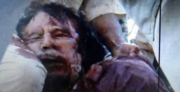 Al Jazeera TV showed footage of a man resembling the 69-year-old Gaddafi lying dead or severely wounded, bleeding from the head and stripped to the waist as fighters rolled him over on the pavement. Witnesses said his body was put on display in the nearby city of Misrata.