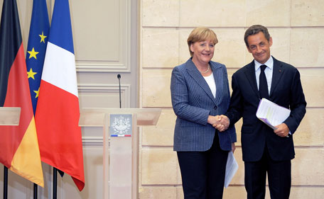 Sarkozy and Merkel stressed their commitment to defending the common currency, a cornerstone of integration on this long-fractured continent. They presented their proposals after meeting Tuesday in Paris amid signs of economic slowdown, and after an exceptionally turbulent week on financial markets prompted by concern about Europe's financial health.