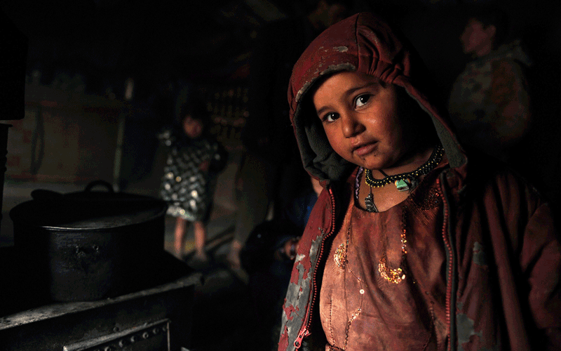 An internally displaced Afghan child from Helmand province poses for a picture inside a mud shelter for the displaced at the Charhi Qambar refugee camp on the outskirts of Kabul. Fleeing Nato bombardment and Taliban intimidation, thousands of Afghans in refugee camps in the capital Kabul face a new enemy: an unusually bitter winter that is killing their children. (AFP)