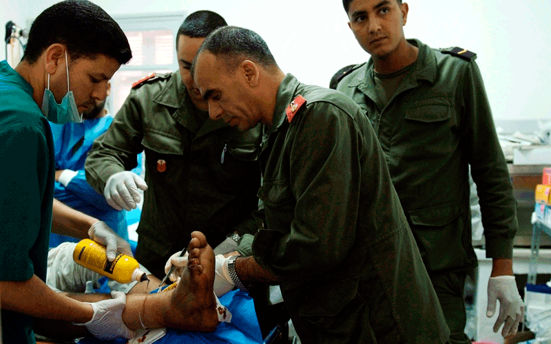 Medical staff attend to a wounded Libyan rebel fighter at Dehiba hospital near the Libya-Tunisia border (REUTERS)