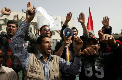 Shashef Shenshun, 48, said he walked two hours from the eastern Baghdad slum of Sadr City "because I want the government to change the situation."