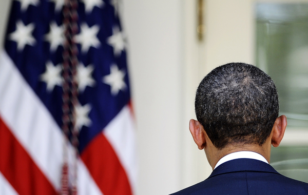 US President Barack Obama walks back to the Oval Office after making a statement to the press in the Ross Garden of the White House in Washington, DC. (AFP)