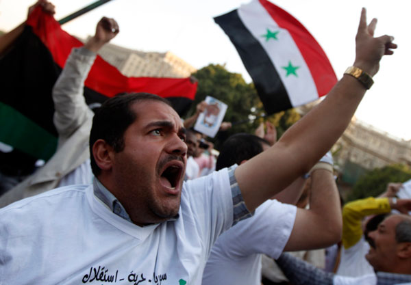 "Our souls, our blood we sacrifice for you, Libya!" Syrian protesters chanted Friday.