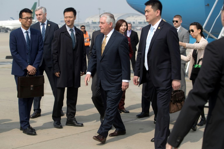 The United States' top diplomat will press a tougher new line on North Korea in talks with a wary China on Saturday, in a tense atmosphere after President Donald Trump accused Beijing of failing to rein in Pyongyang.