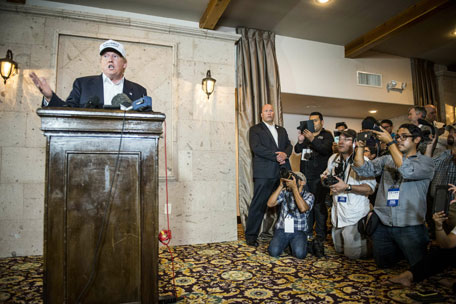 Republican Presidential candidate and business mogul Donald Trump talks to the media at a press conference during his trip to the border on July 23, 2015 in Laredo, Texas. (AFP)