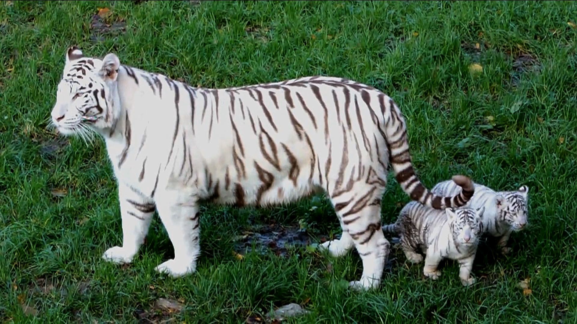 Three-year old white tiger gives birth to two cubs