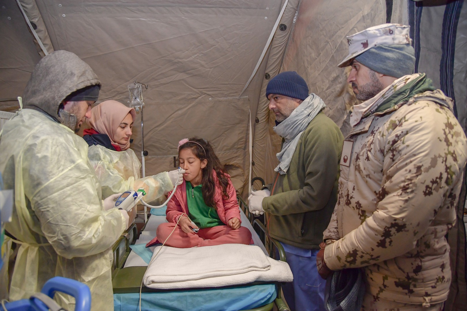 The Emirati search and rescue teams are continuing their efforts to rescue those trapped under the rubble through qualitative devices and equipment.